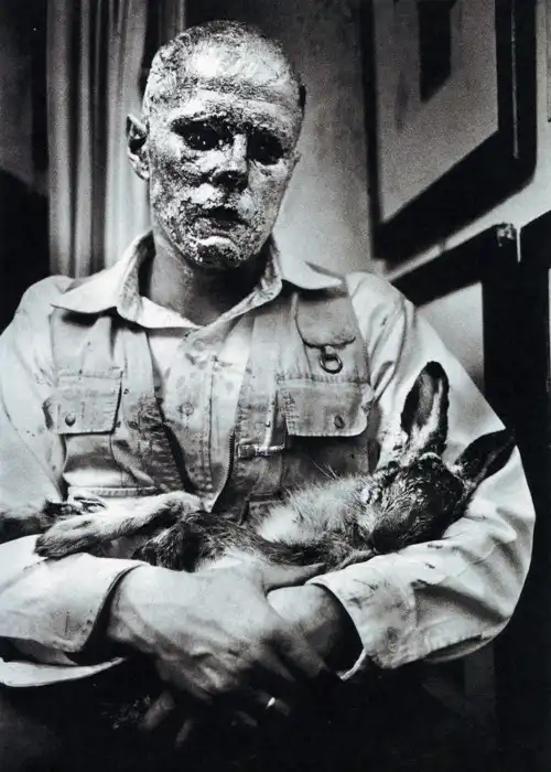 188. How to Explain Pictures to a Dead Hare 怎样向一只死兔子解释绘画 1965(Joseph Beuys, 约瑟夫·博伊斯)