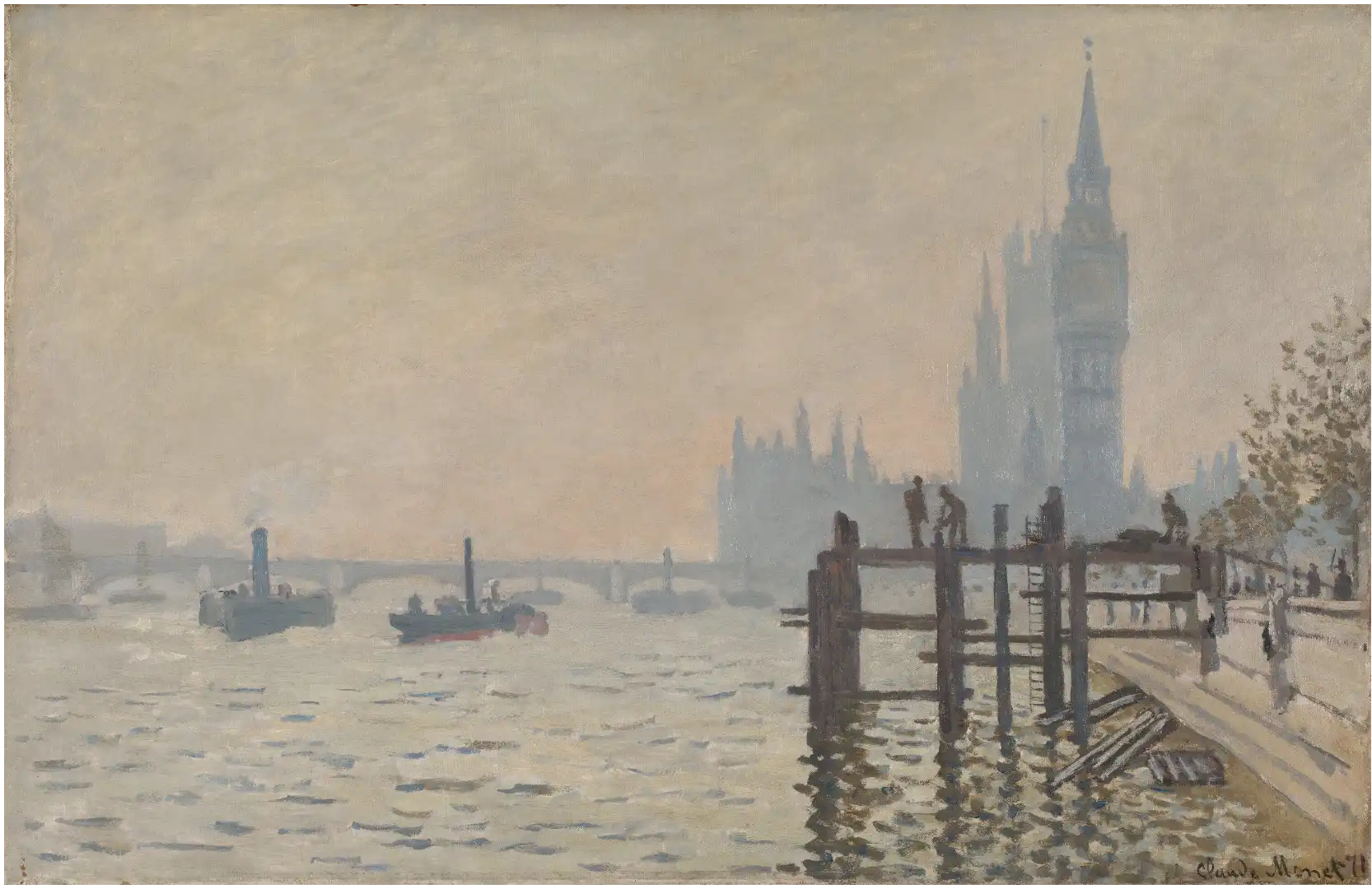 22. The Thames below Westminster 威斯敏斯特下的泰晤士河 1871 (Claude Monet, 克劳德·莫奈)